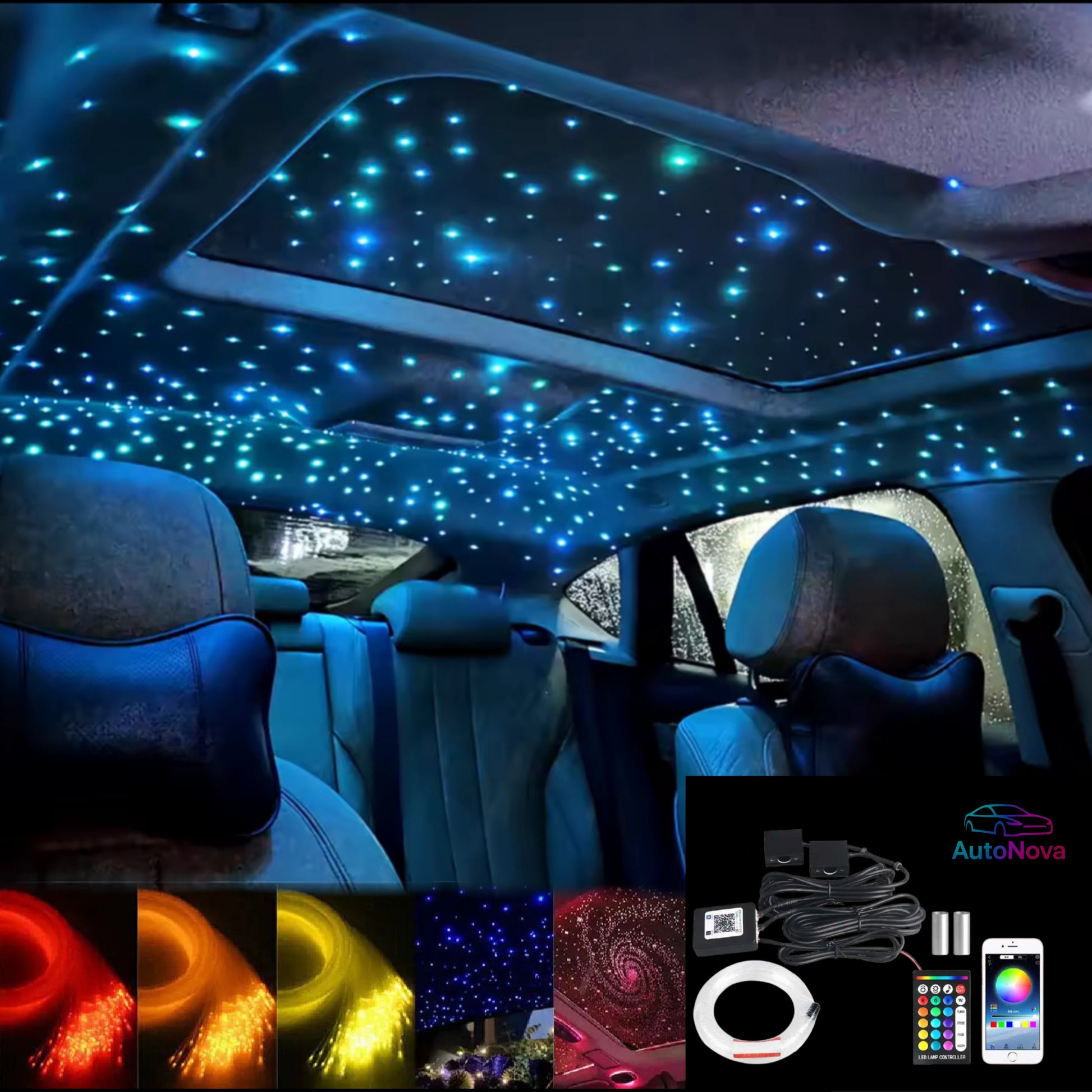 Convierte el interior de tu coche en un cielo estrellado con este sistema LED de alta calidad. Cada punto de luz es totalmente personalizable: cambia color, brillo y efectos desde el mando o la app. La instalación es sencilla, segura y discreta, con cableado oculto y materiales resistentes al calor.